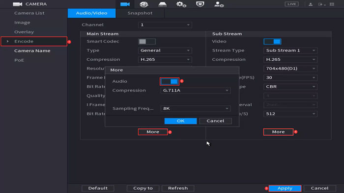 وارد منوی DVR یا NVR شوید و در بخش تنظیمات کانال یا ضبط: